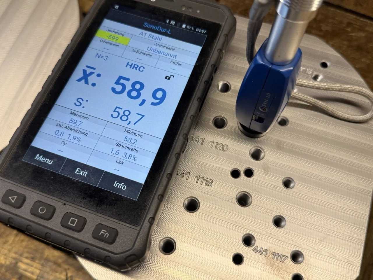 Wir nutzen modernste digitale HRC-Prüfgeräte für reproduzierbare Ergebnisse im gesamten Härtespektrum von Werkzeugstählen.
